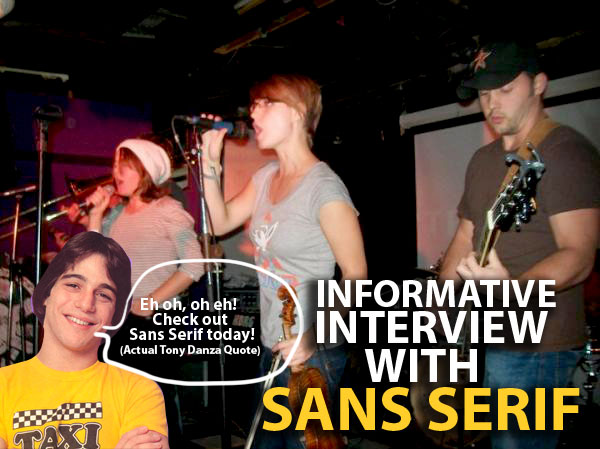 Holy Smokes!! What the crunk!?  We just landed ourselves another celebrity inteview. What the grill!  Our latest interview is with the great Canadian crunk band Sans Serif.  The band consists of these crazy cats: Stu Ron Hubbard, Peter Chipman, Stephanie Gora, Jason Meisner, Jeremy Toma, Jack Dalziel & Rachel Wise.  If you don’t know Sans Serif, you probably don’t even know what colour pants your wore yesterday or maybe you didn’t even wear pants.  Seriously you should know this band.  Your life will probably change just by listening to their music. Before I started listening to Sans Serif I seriously hated roasted peppers…now they are a regular part of my daily diet. I am absolutely certain that I have Sans Serif to thank for my new found love of roasted peppers.  Check them out here grab a plate of vegetables you think you hate and read our interview.
